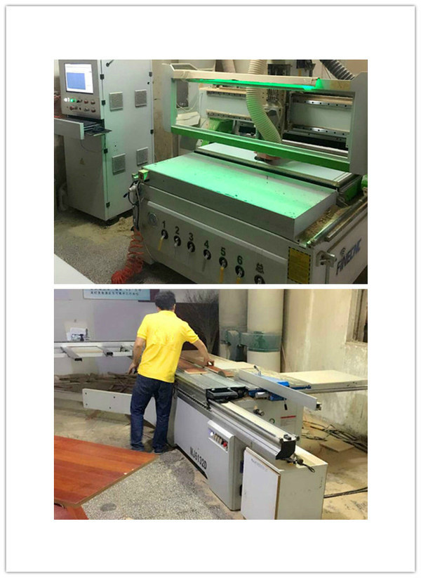 从签订正式合同下单开始,整个的流程有:设计师复尺寸——车间师傅拆板,核对板材数量——数控锯裁板——封边机封边——打孔机打孔——安装预埋件——预装——打包入库——发货安装。