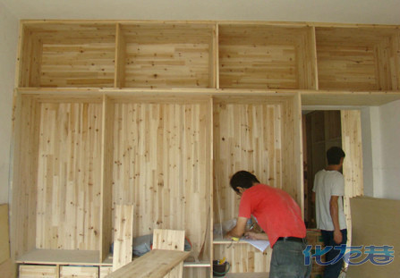 木工家具:现场制作的家具,所用木工板内部大量使用尿醛胶,甲醛含量较高,由于其产品结构是胶水加钉子,加工时也需要大量胶水,所用胶水大部分有甲醛超标情形,故现场打制的家具极不环保,特别是有业主在场时,为了表示不偷工减料,现场打制的东西结实,可能还会给你说“给你多涂些胶水”,岂不知这样做出来的家具甲醛含量更上了一个档次。