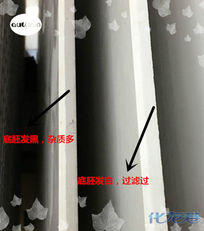 没经过过滤处理的瓷泥烧制出来的瓷砖底胚发黑,因为杂质较多,所以颜色偏暗,而且仔细看会有很多细小颗粒掺杂在里面。这样的瓷砖密度小,气孔多,肯定是更容易吸水的。