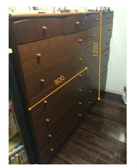 补充一下多屉柜,日文是箪笥,类似于中国老款式的衣橱,收纳效率非常高,在日本也很受妇女喜爱(笑)。如果是用好的木材的话,价格相当不菲。样子和尺寸大概是这样的: