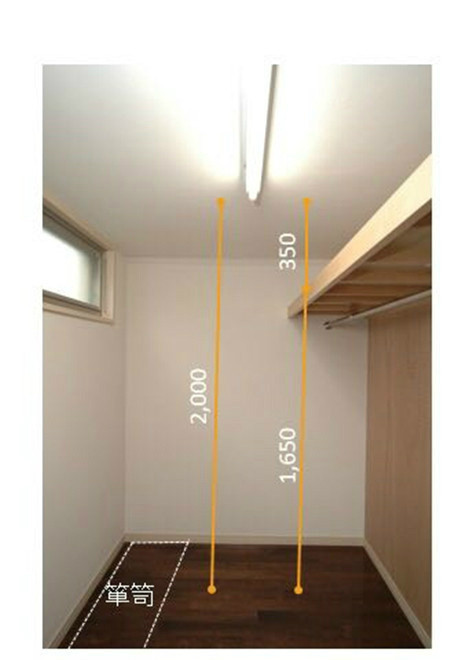 顺便补充下这个例子中衣帽间高度只有2m的原因是,上部楼层的对应位置是浴室,为了设置管道而降低了局部的楼层高度(反正太高也够不着)。另外因为主人需要挂的衣物不多并且在外侧另有衣柜,且主人杂物很多,所以实际上挂置衣物的部分采用了类似类型A中一面墙的布局。