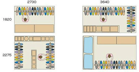 例如,在第一节中提到的3平米衣帽间,其标准布局就是中间走道两侧衣架或柜子的布局。但是当进深变大的时候,内部的衣物无疑会变得难以整理,稍降低其收纳率而采用L字布局能够解决这个问题,但需要注意的是,L型布局的转角处并不很好利用。