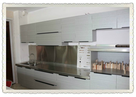 亚克力柜门,产地:上海、南京。亚克力早期很流行有木有,近几年受晶钢门和烤漆的冲击,慢慢走下了神坛,不过依然很受欢迎!优点:好擦好洗,高亮,颜色花型特多。缺点:相对于晶钢门不耐刮!