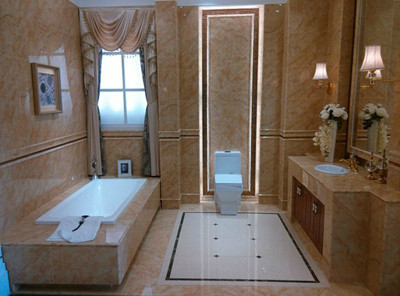 9、卫生间的门口要有一块门槛石!注意将下面密封好!要不然外面铺地板的话,地板就会被水泡坏。