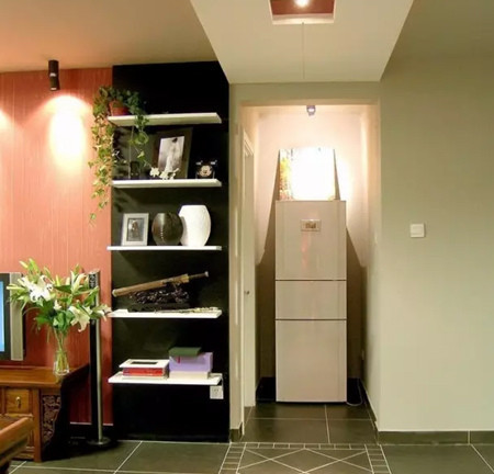 ▲鞋柜的背面开辟一个放冰箱的空间