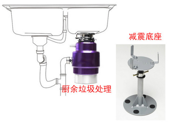 经年累月吊着个铁疙瘩对于台下盆来说确实是个挑战,更严重的是开机后马达震动带来的影响,即便家里是台上盆也要引起重视。如果要装垃圾处理器,那么好配减震底座,用来固定并支撑整个设备。80~100元就可以买到一个底座,加上后可以增加整个系统的使用年限。