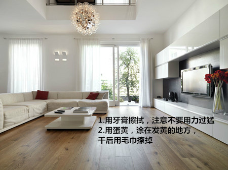 1、问题:白色家具变黄处理方法:家具表面的白色油漆,日久会变色,可用抹布沾牙膏抹试,注意不要用力过猛,也可把两个蛋黄搅匀,用软刷子往发黄的地方涂,干后用软布小心抹干净就可以了。