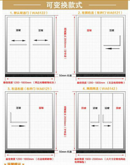 方形淋浴房尺寸常见规格:800*1000㎜,900*1000㎜,1000*1000㎜