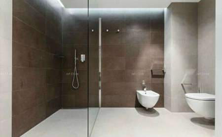 半隔断是较为常见的,虽然挡水条能挡住地面上的水外流,但水往外溅的问题,还是较难解决。这样的话,好能把马桶的位置放在玻璃隔断的一端,不易溅上水。