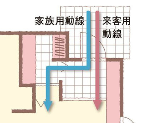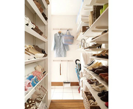 玄关的流线设计:家人和客人的流线分开,并设置不同的鞋柜收纳空间