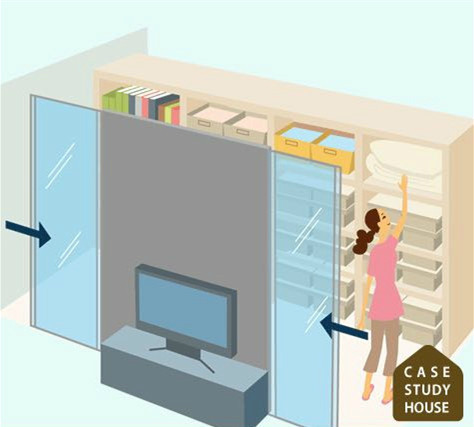 客厅说乱七八糟都可以很快的收纳到里面,非常便利。突然来客人的时候也能很快的收拾屋子。