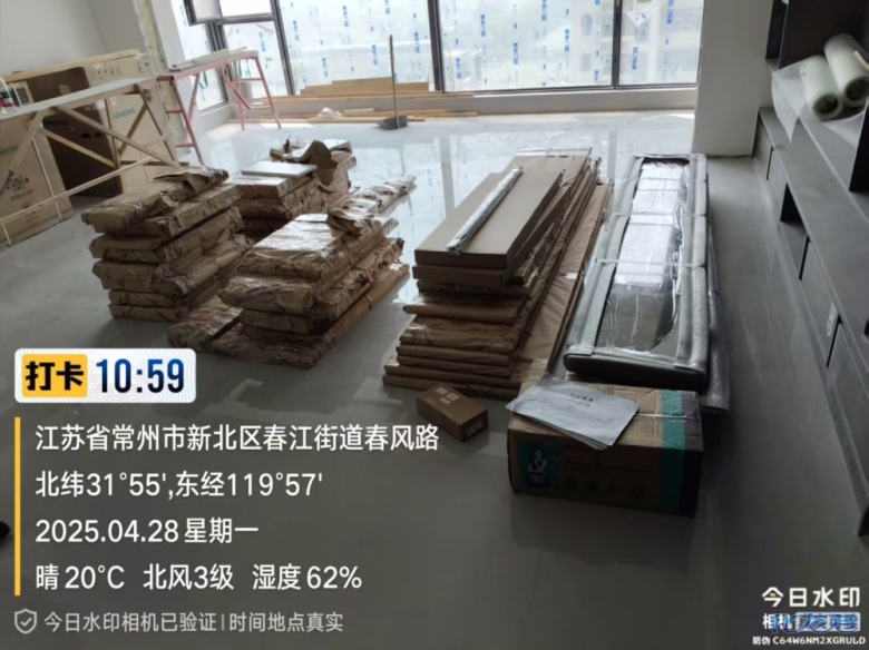 货已安全送到客户家了,7 天内安排师傅上门安装哦。安装阶段请您把您家需要用到的厨房水槽、灶具、浴柜台盆放置在现场,后期台面安装需用到。柜子安装好后进入台面测量环节,台面量完后一个星期内送货并安装。