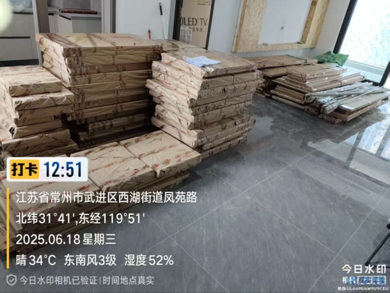 货已安全送到客户家了,7 天内安排师傅上门安装哦。安装阶段请您把您家需要用到的厨房水槽、灶具、浴柜台盆放置在现场,后期台面安装需用到。柜子安装好后进入台面测量环节,台面量完后一个星期内送货并安装。