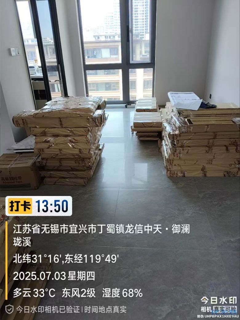 货已安全送到客户家了,7 天内安排师傅上门安装哦。安装阶段请您把您家需要用到的厨房水槽、灶具、浴柜台盆放置在现场,后期台面安装需用到。柜子安装好后进入台面测量环节,台面量完后一个星期内送货并安装。