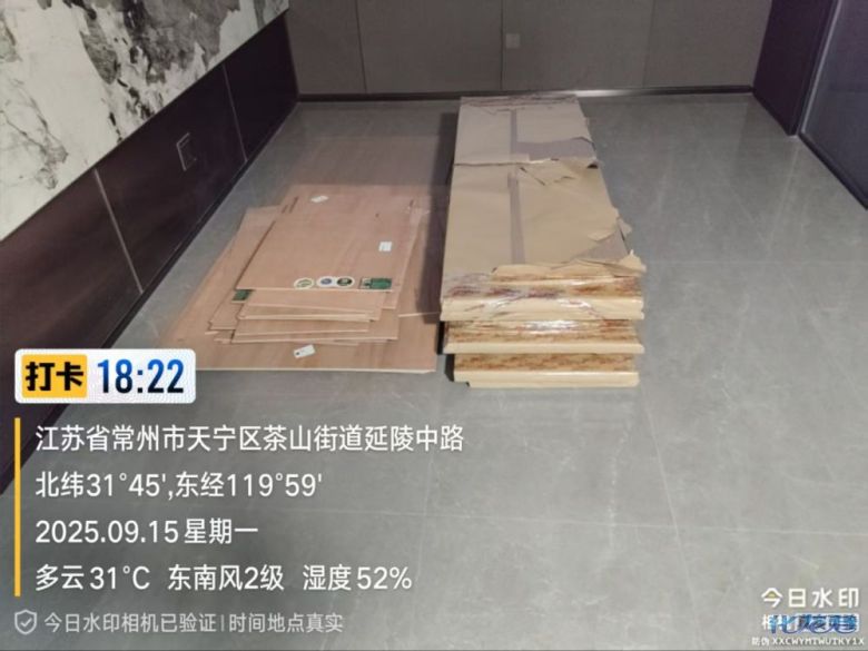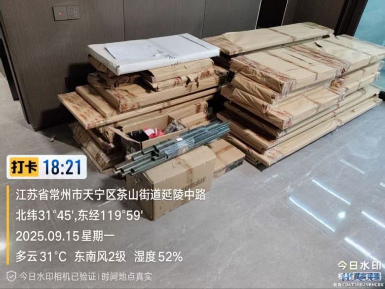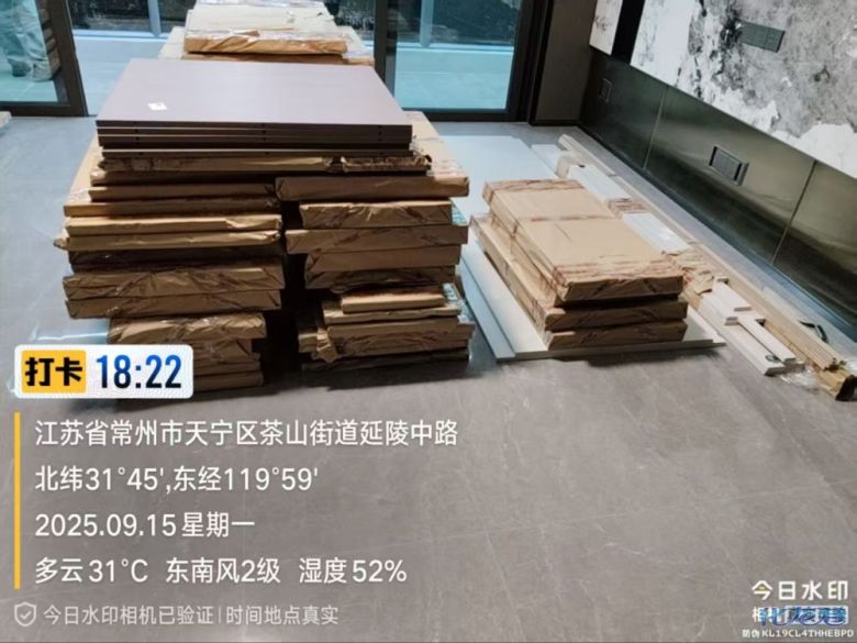 货已安全送到客户家了,7 天内安排师傅上门安装哦。安装阶段请您把您家需要用到的厨房水槽、灶具、浴柜台盆放置在现场,后期台面安装需用到。柜子安装好后进入台面测量环节,台面量完后一个星期内送货并安装。