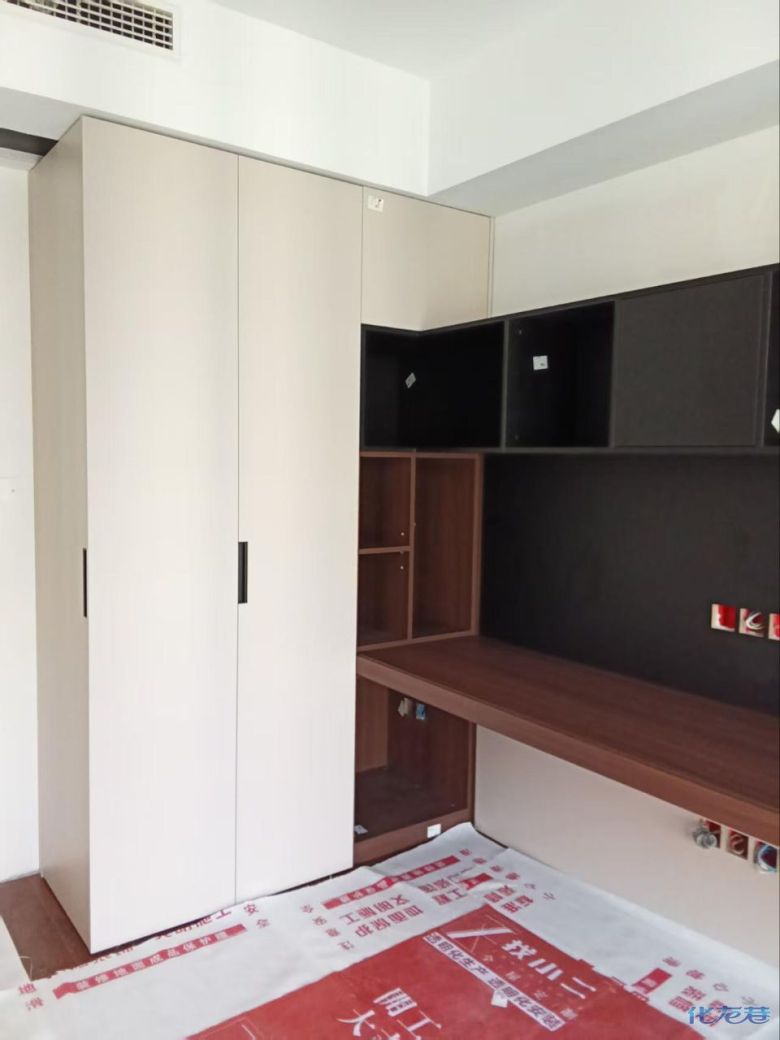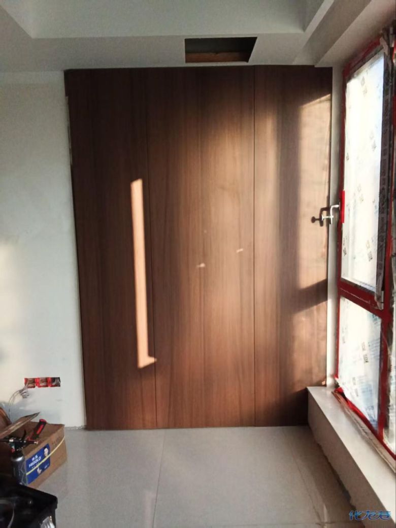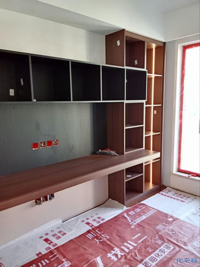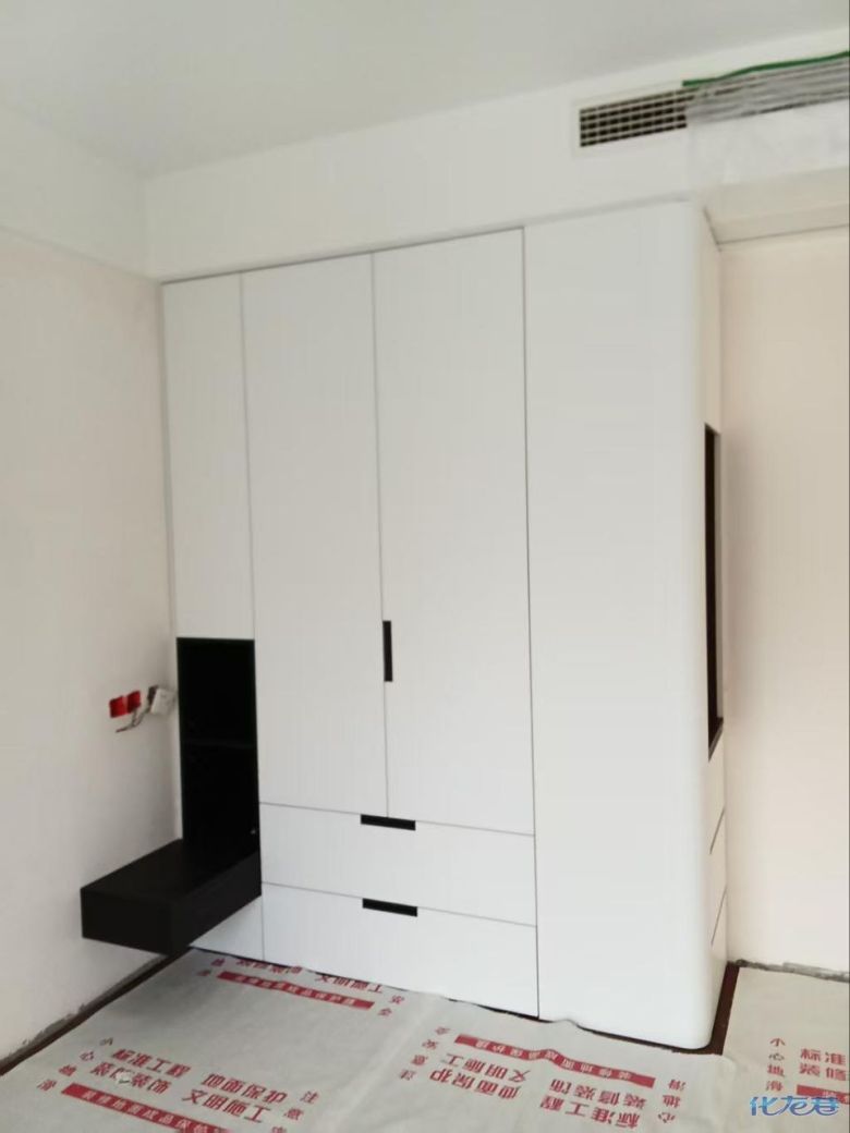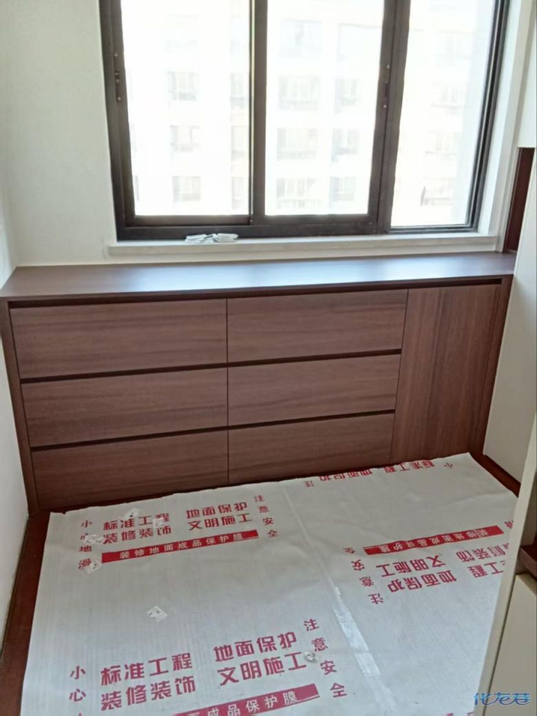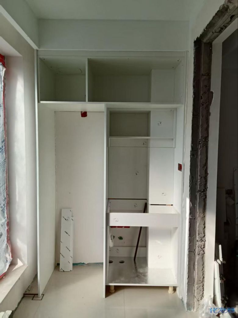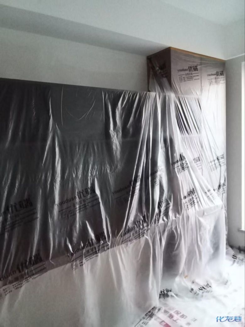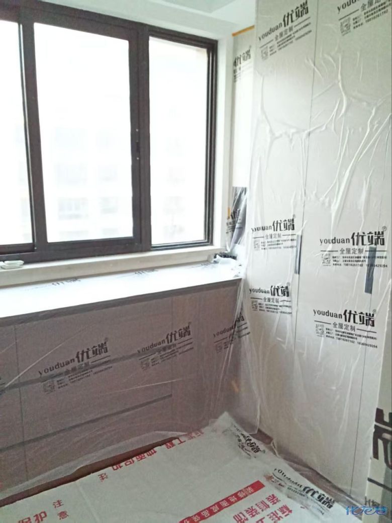 安装完成的柜子都用塑料膜保护起来了