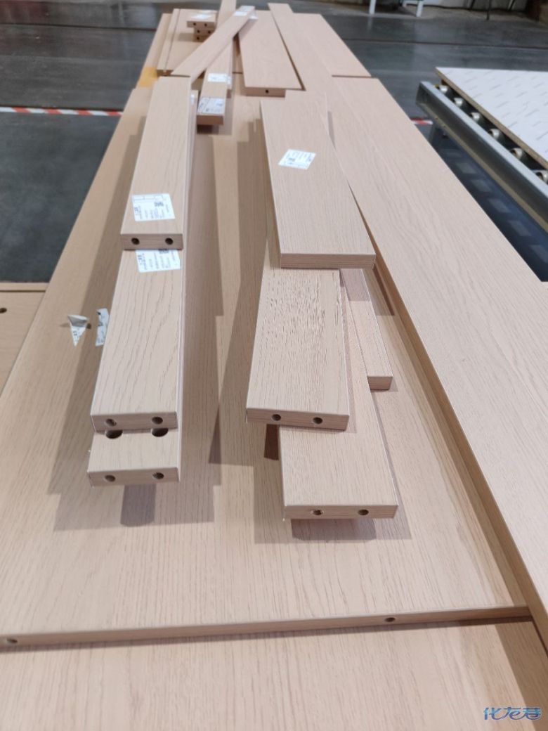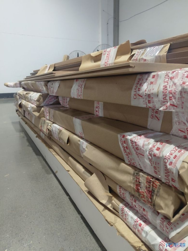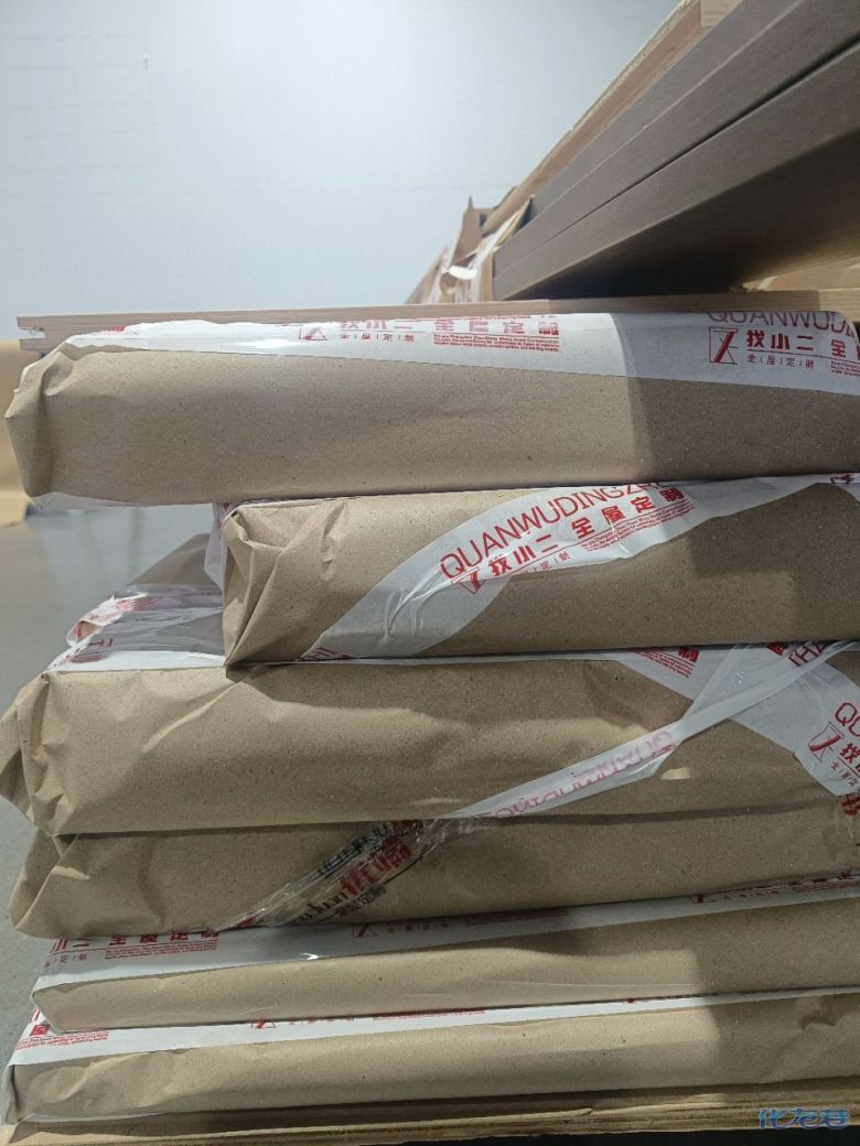 进入打包环节,我家柜子每块板都是整个打包起来的,以防运输过程中划伤或者磕碰到,跟板材下面垫板一个原理哦!重新订板会存在色差,这是重点,圈起来必考。全部打包好就可以联系客户送货咯!