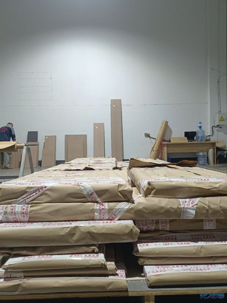 进入打包环节,我家柜子每块板都是整个打包起来的,以防运输过程中划伤或者磕碰到,跟板材下面垫板一个原理哦!重新订板会存在色差,这是重点,圈起来必考。全部打包好就可以联系客户送货咯!