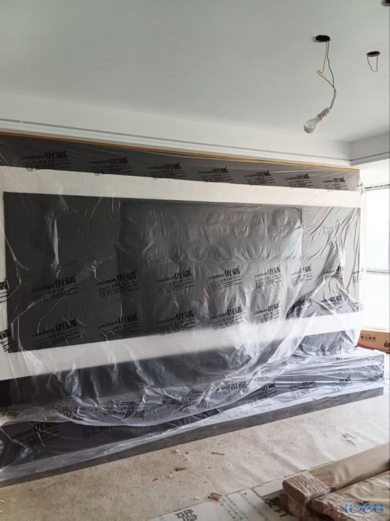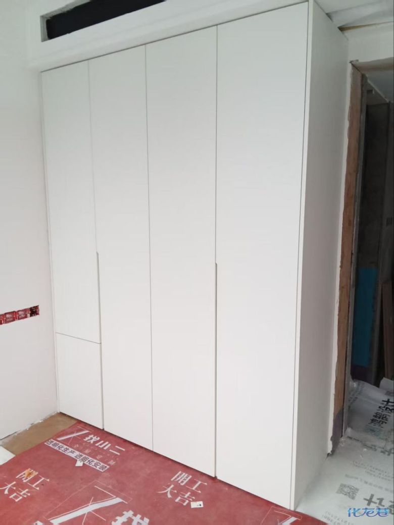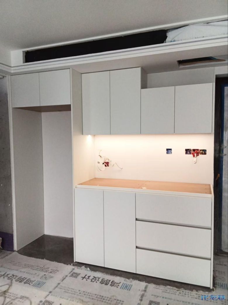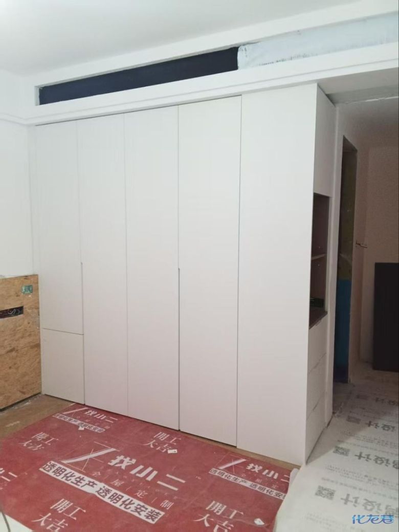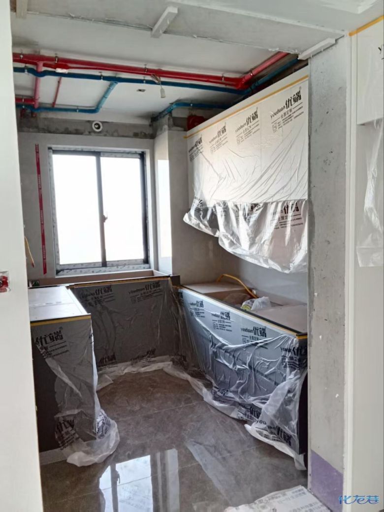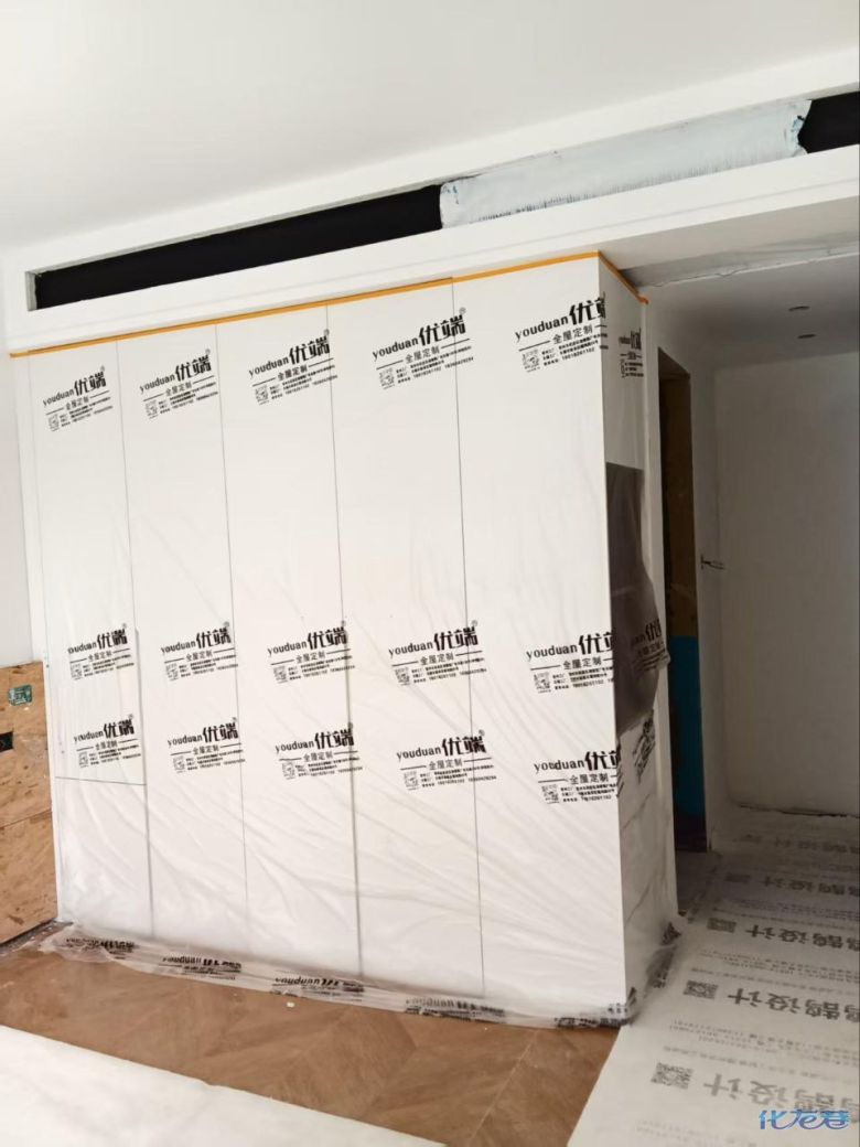 安装完成的柜子都用塑料膜保护起来了