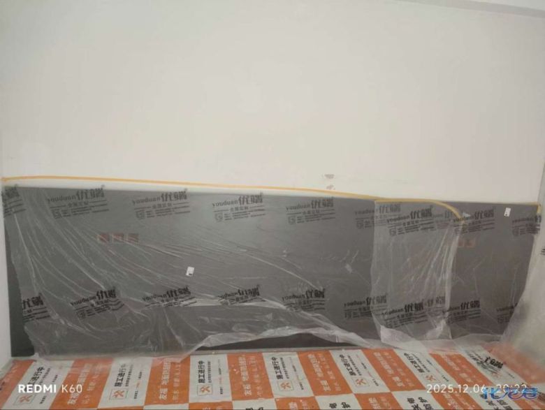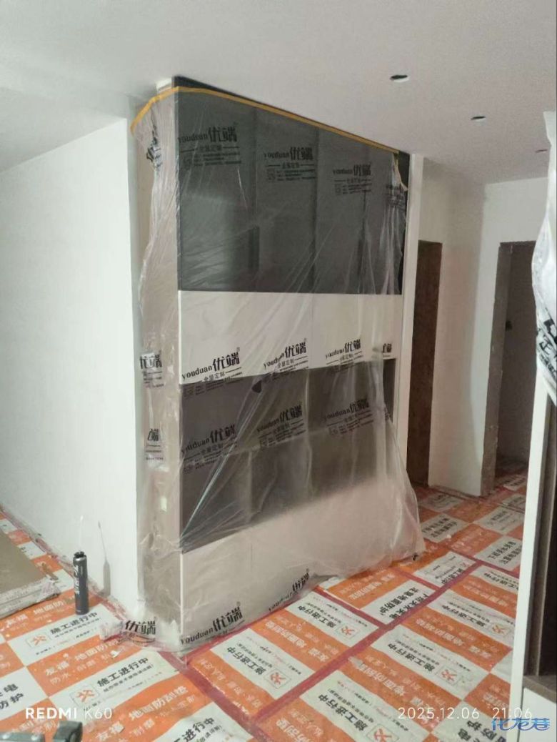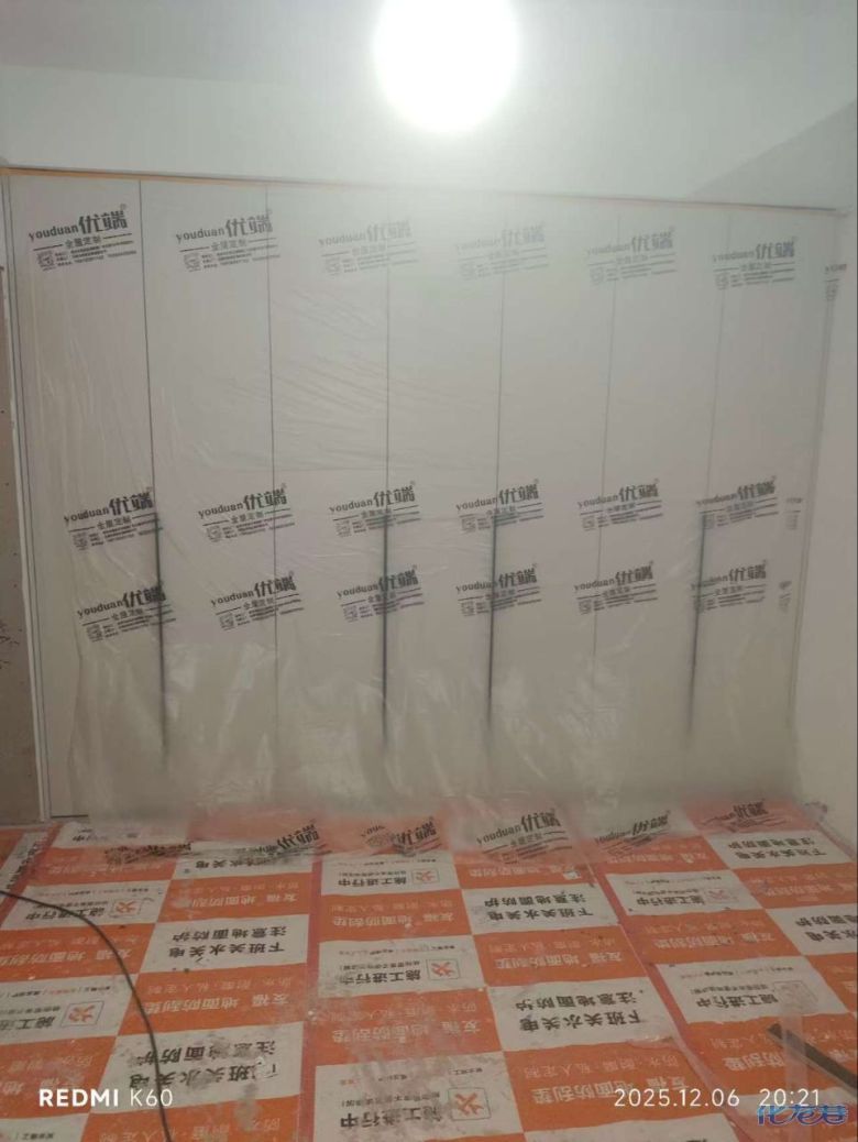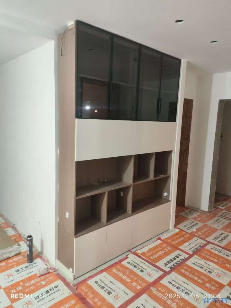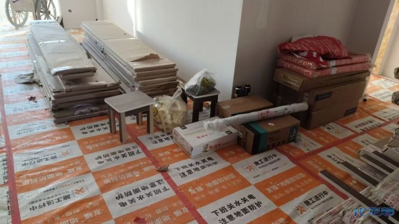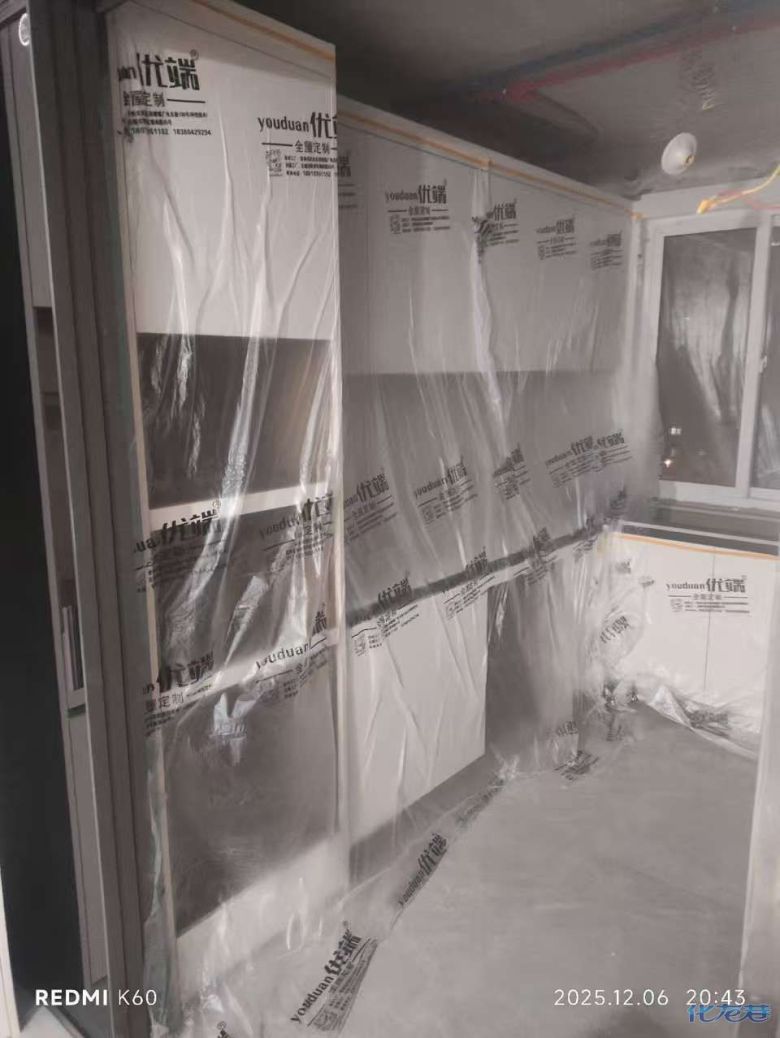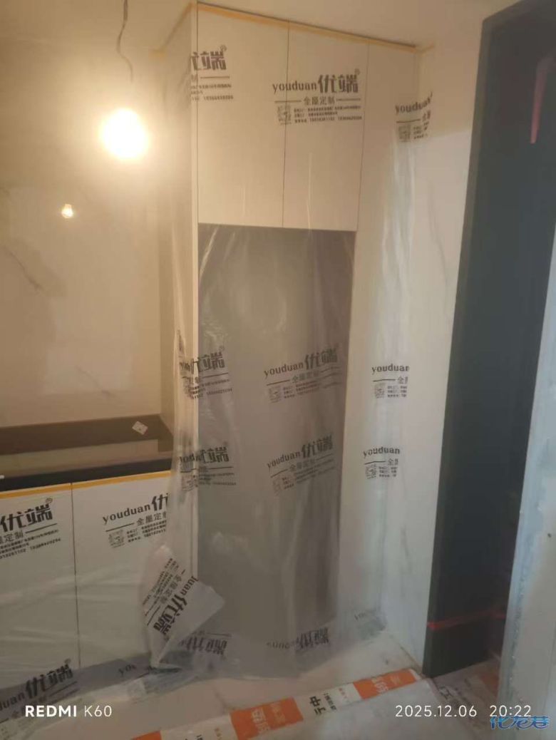 安装完成的柜子都用塑料膜保护起来了