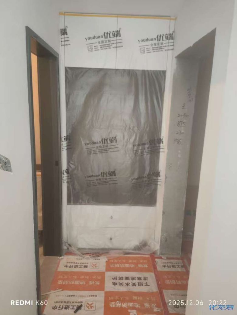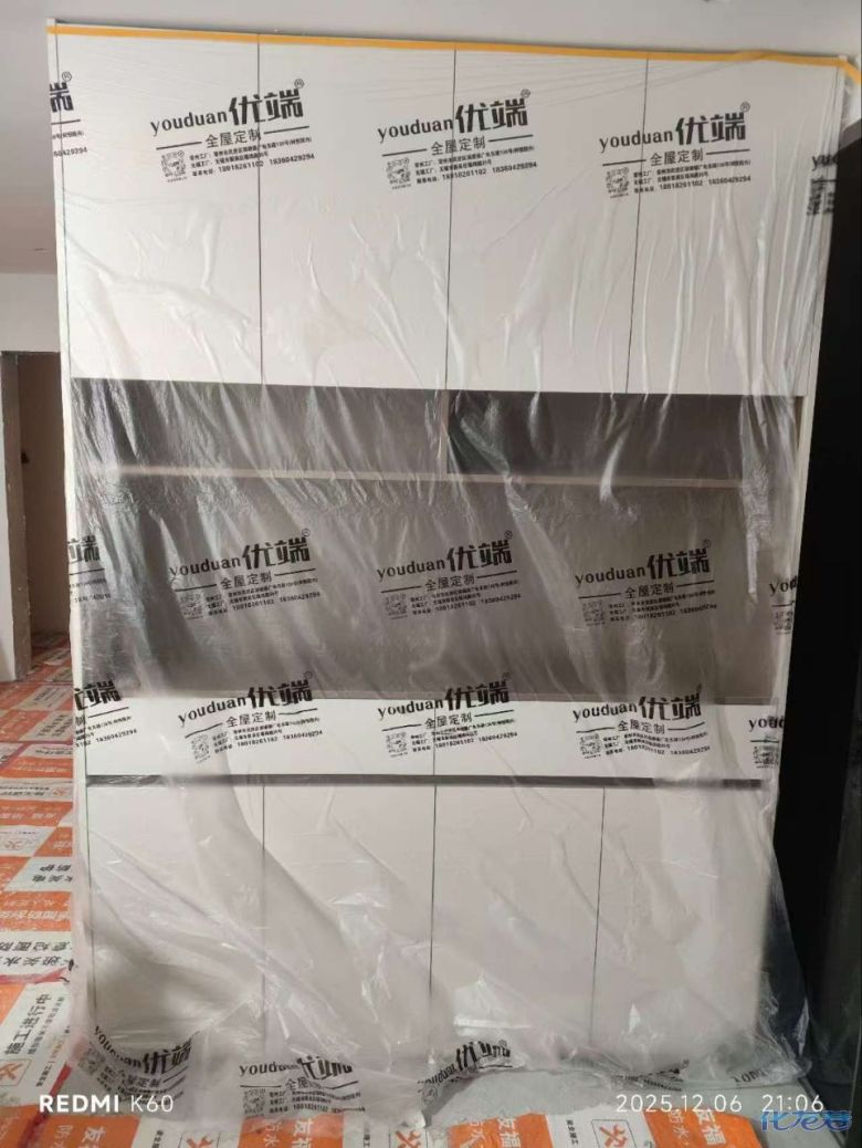进入打包环节,我家柜子每块板都是整个打包起来的,以防运输过程中划伤或者磕碰到,跟板材下面垫板一个原理哦!重新订板会存在色差,这是重点,圈起来必考。全部打包好就可以联系客户送货咯!