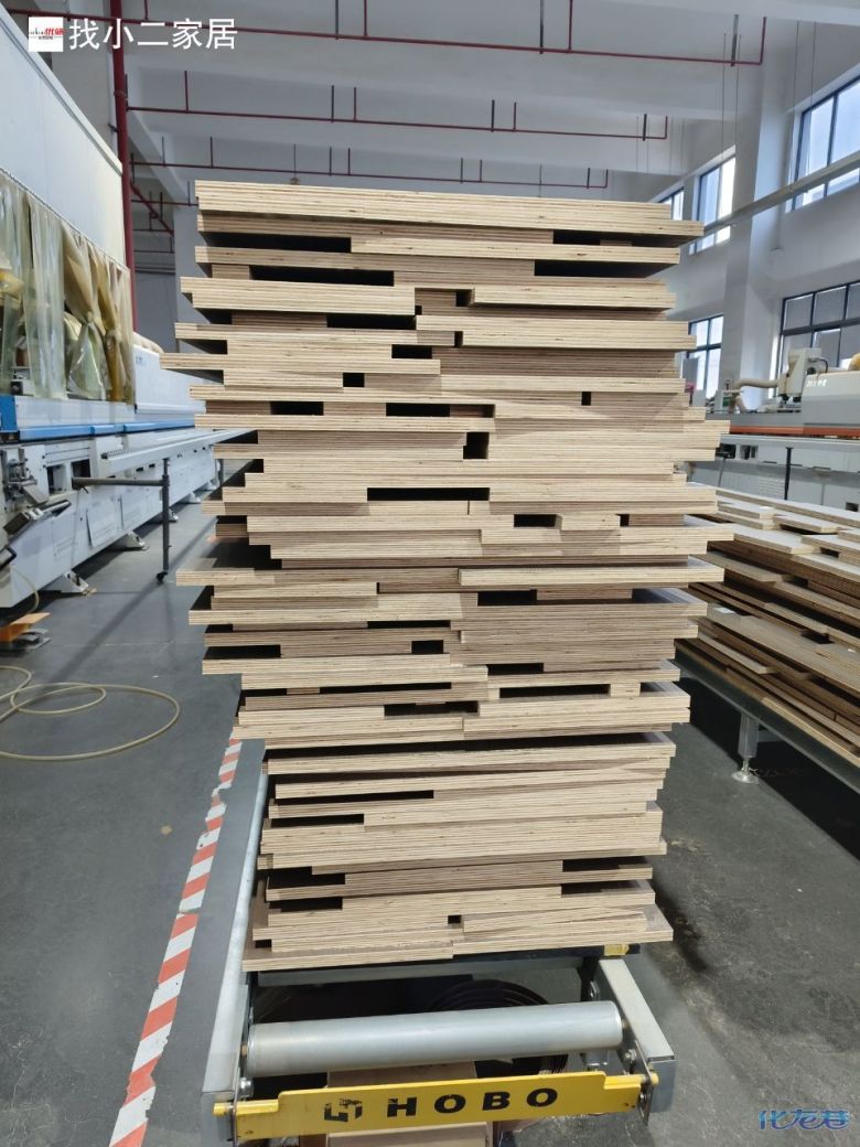 进入打包环节,我家柜子每块板都是整个打包起来的,以防运输过程中划伤或者磕碰到,跟板材下面垫板一个原理哦!重新订板会存在色差,这是重点,圈起来必考。全部打包好就可以联系客户送货咯!