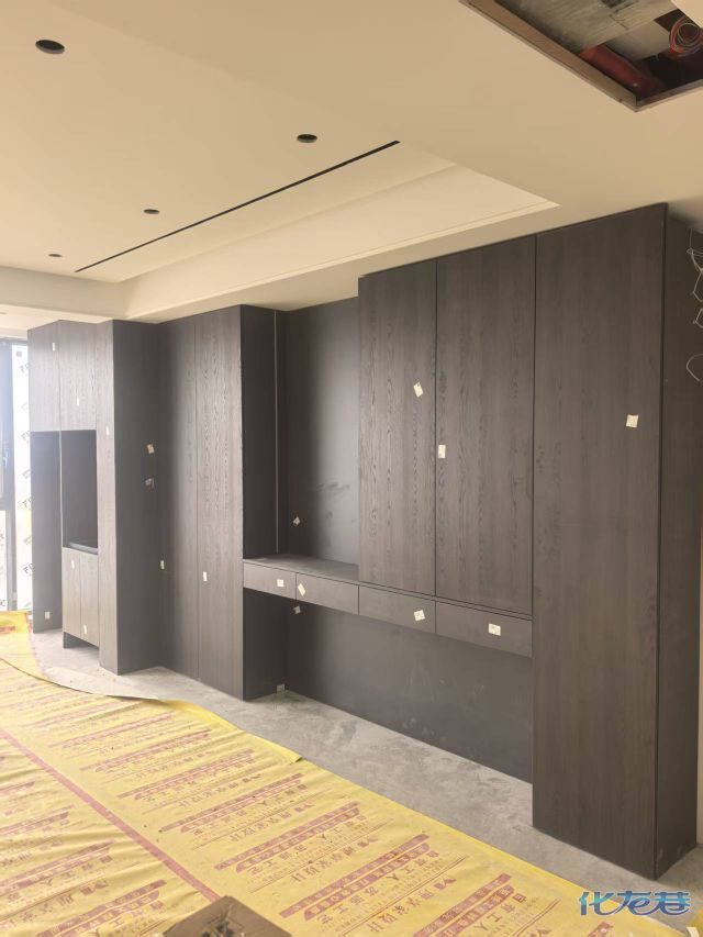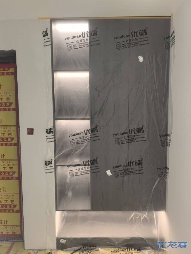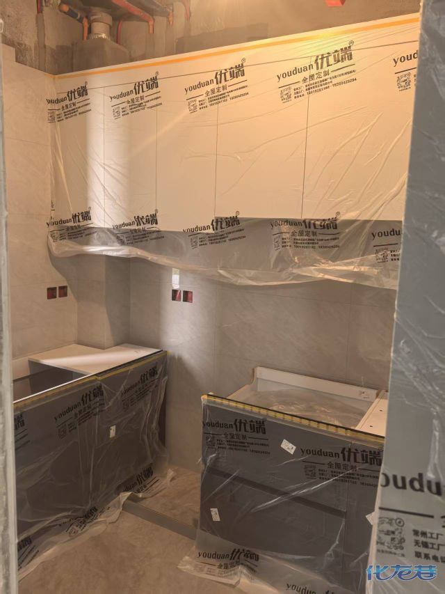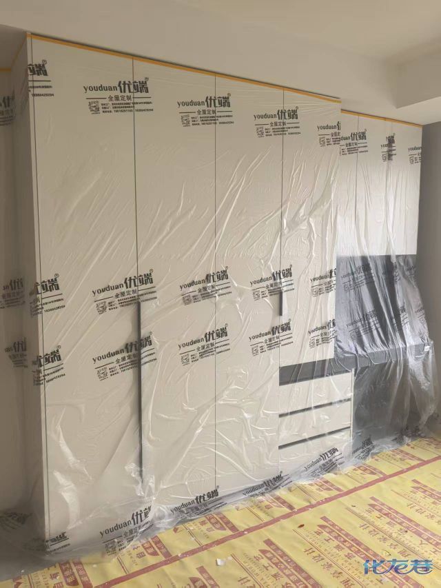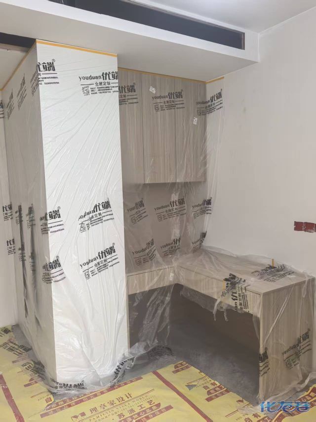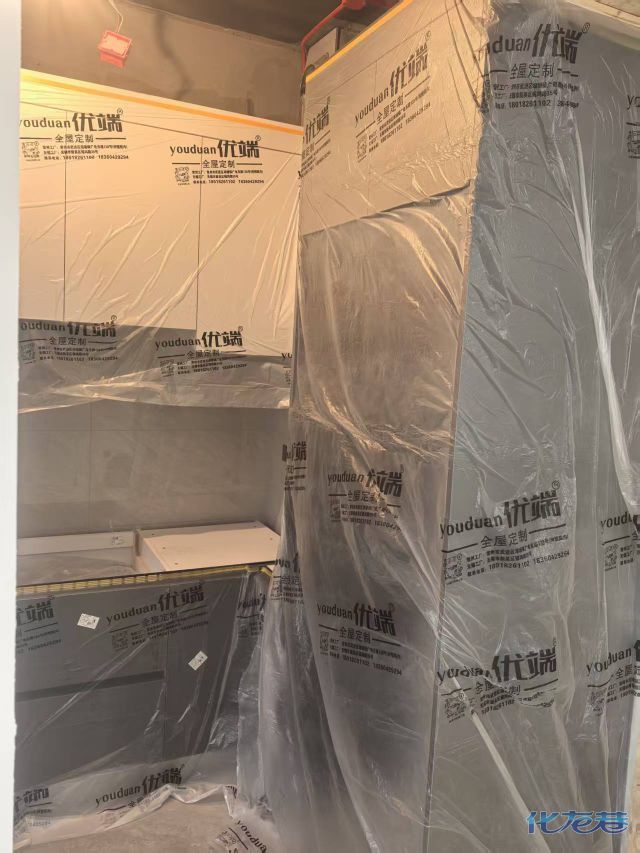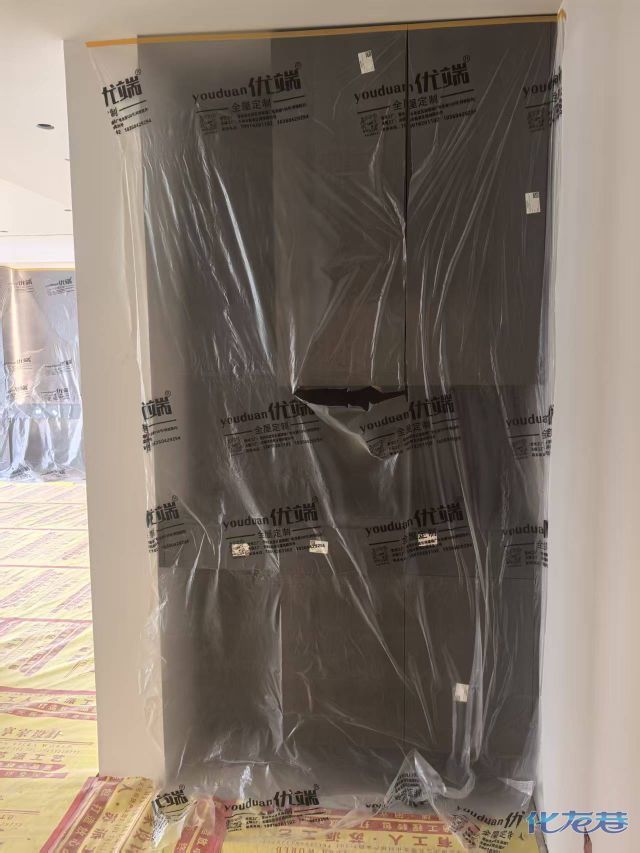 安装完成的柜子都用塑料膜保护起来了