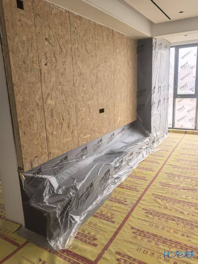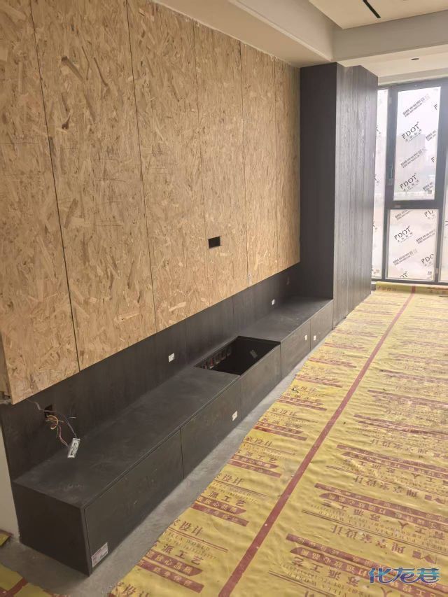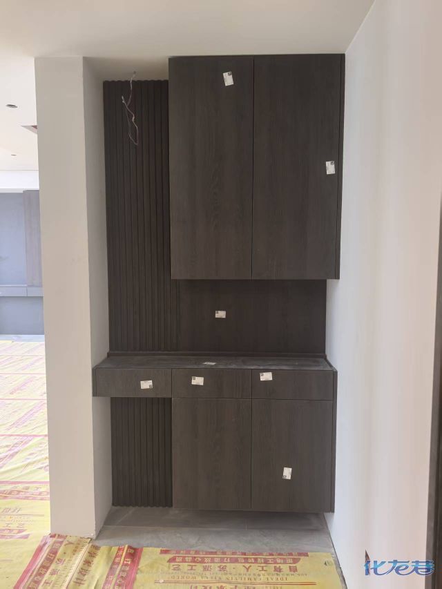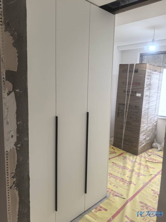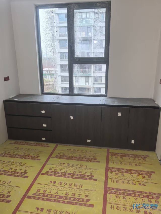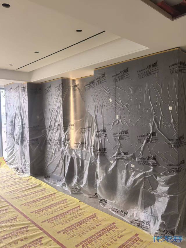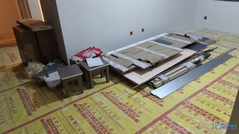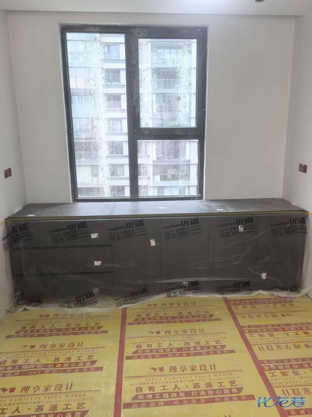 安装完成的柜子都用塑料膜保护起来了