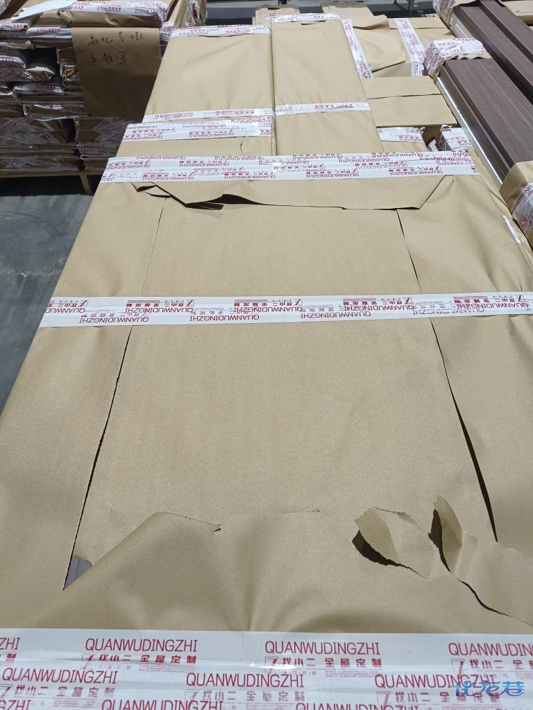 进入打包环节,我家柜子每块板都是整个打包起来的,以防运输过程中划伤或者磕碰到,跟板材下面垫板一个原理哦!重新订板会存在色差,这是重点,圈起来必考。全部打包好就可以联系客户送货咯!