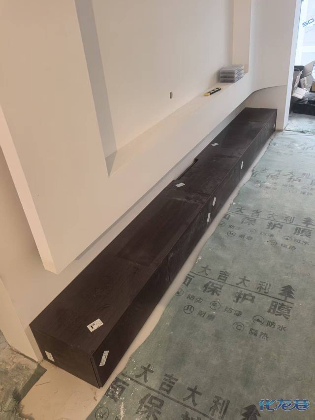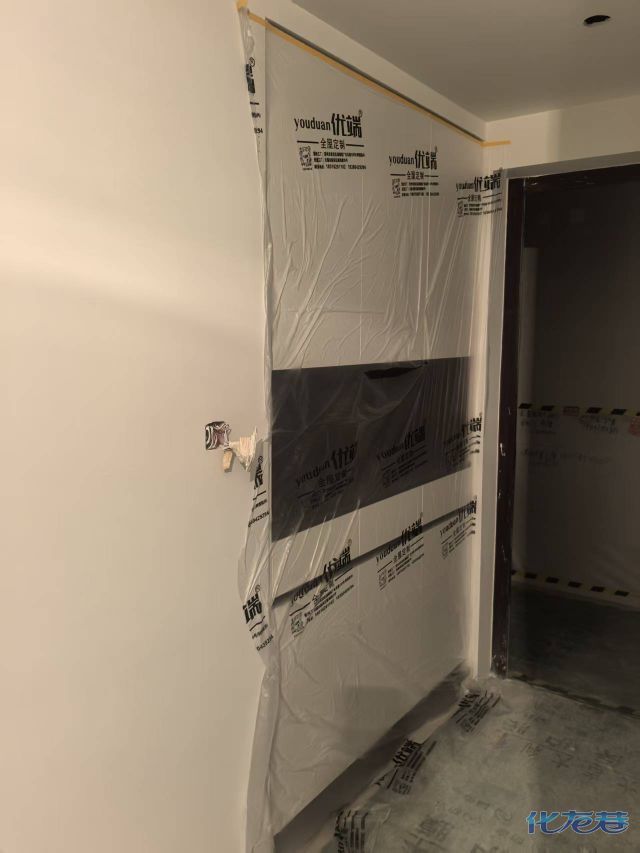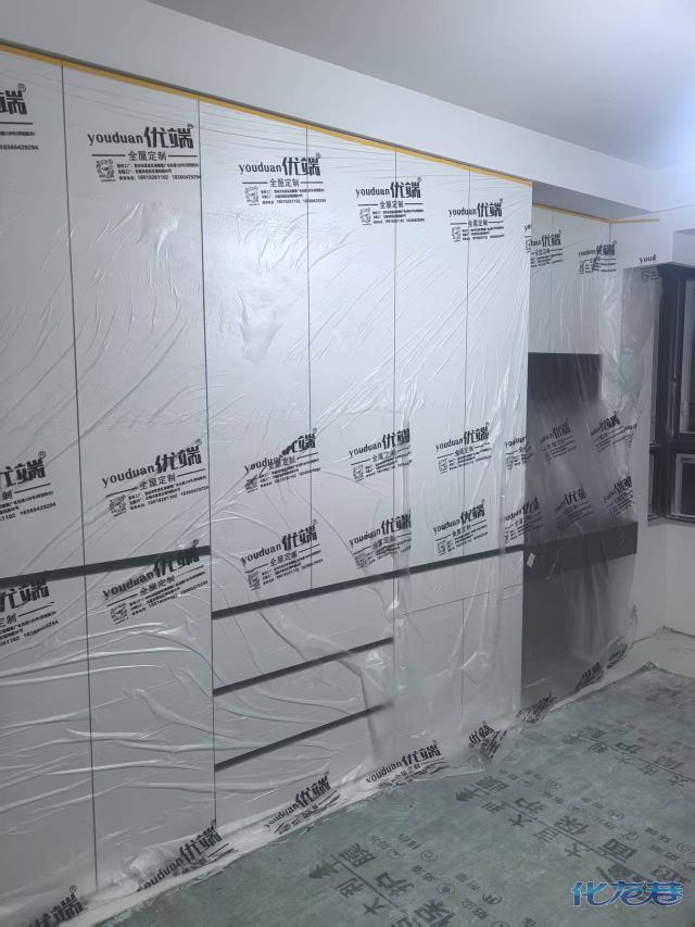 安装完成的柜子都用塑料膜保护起来了