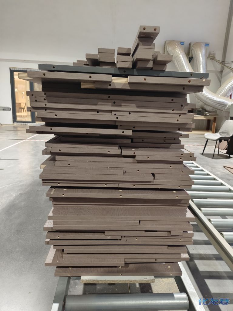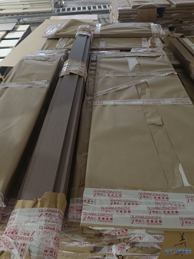 进入打包环节,我家柜子每块板都是整个打包起来的,以防运输过程中划伤或者磕碰到,跟板材下面垫板一个原理哦!重新订板会存在色差,这是重点,圈起来必考。全部打包好就可以联系客户送货咯!