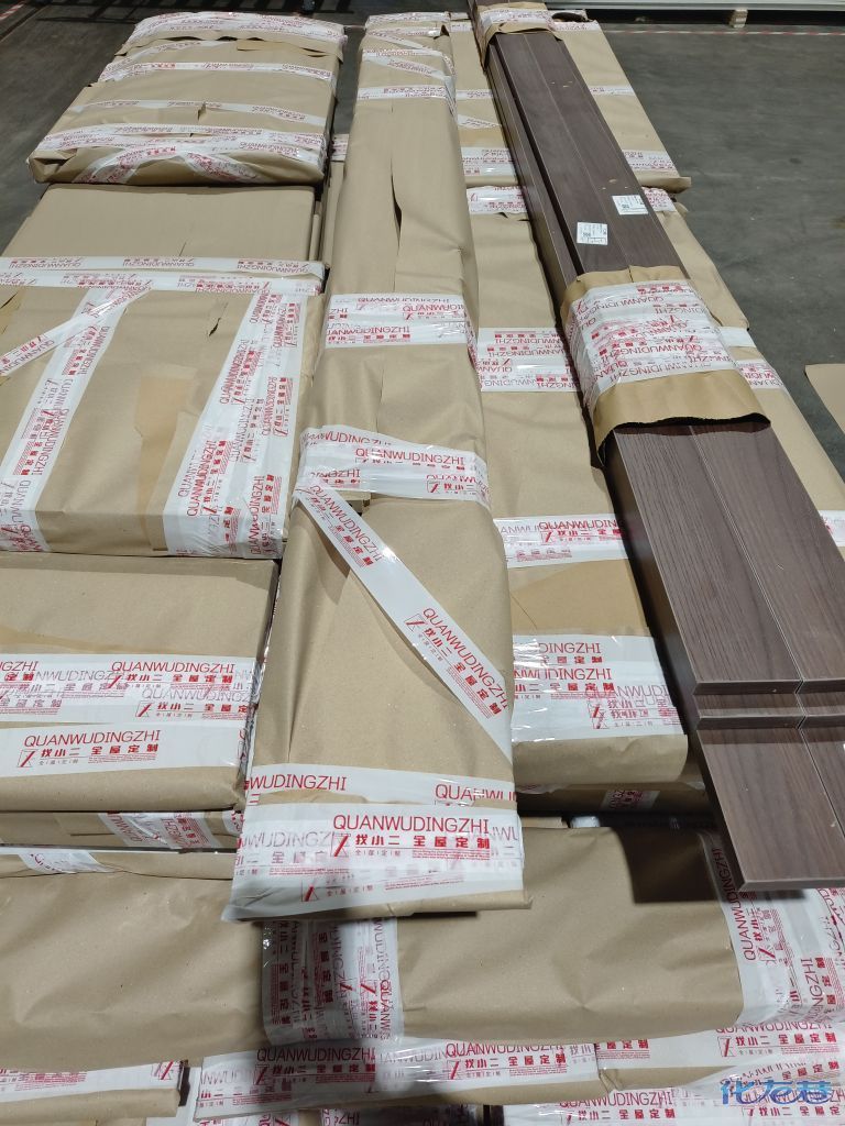 进入打包环节,我家柜子每块板都是整个打包起来的,以防运输过程中划伤或者磕碰到,跟板材下面垫板一个原理哦!重新订板会存在色差,这是重点,圈起来必考。全部打包好就可以联系客户送货咯!
