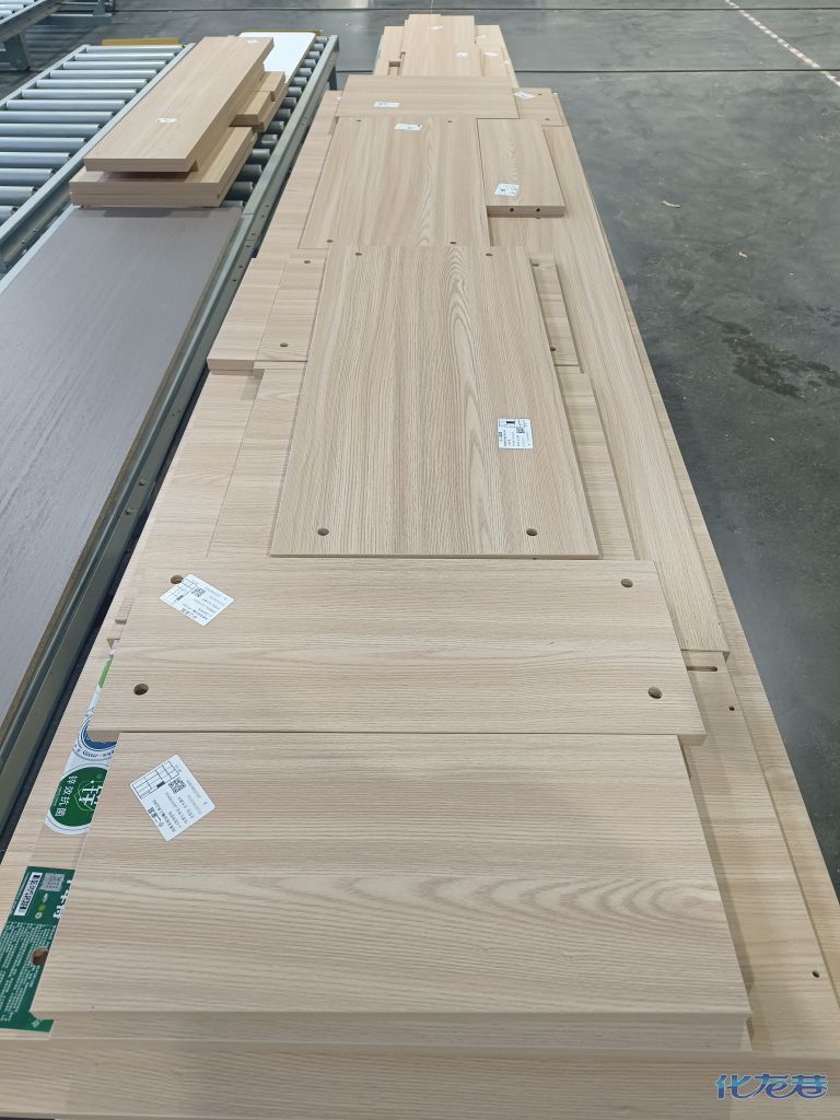 进入打包环节,我家柜子每块板都是整个打包起来的,以防运输过程中划伤或者磕碰到,跟板材下面垫板一个原理哦!重新订板会存在色差,这是重点,圈起来必考。全部打包好就可以联系客户送货咯!