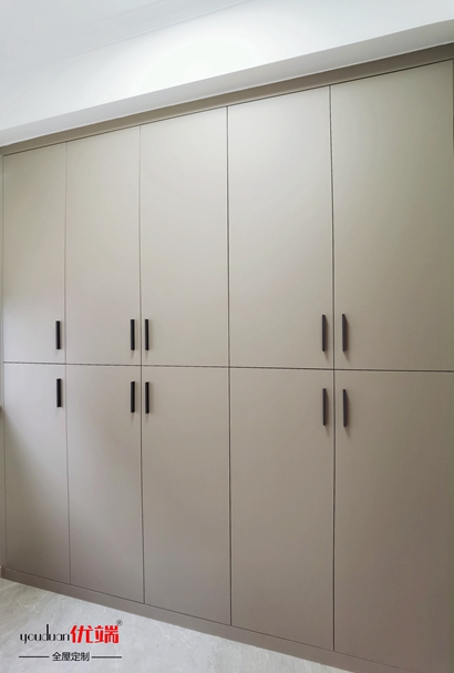 进门右手边的整面肤亚板柜体设计