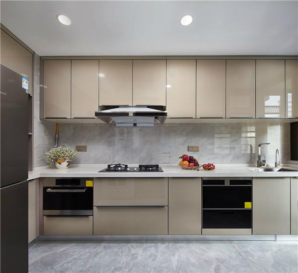 适合风格:所有主流风格。实木多层板柜体,握钉力好,螺丝不易松动,硬度高,承重好。甲醛含量≤0.5㎎/L,板材环保包检测(板材水检)。柜门模压门基材为质地细腻偏软的高密度板,表面做吸膜处理,因其基材方便雕刻,膜皮颜色多样,可以根据客户需求搭配任何风格,也可以做外扣线搭配现代轻奢风格。石英石与不锈钢台面随意搭配,偏颜值偏实用都可以哦!